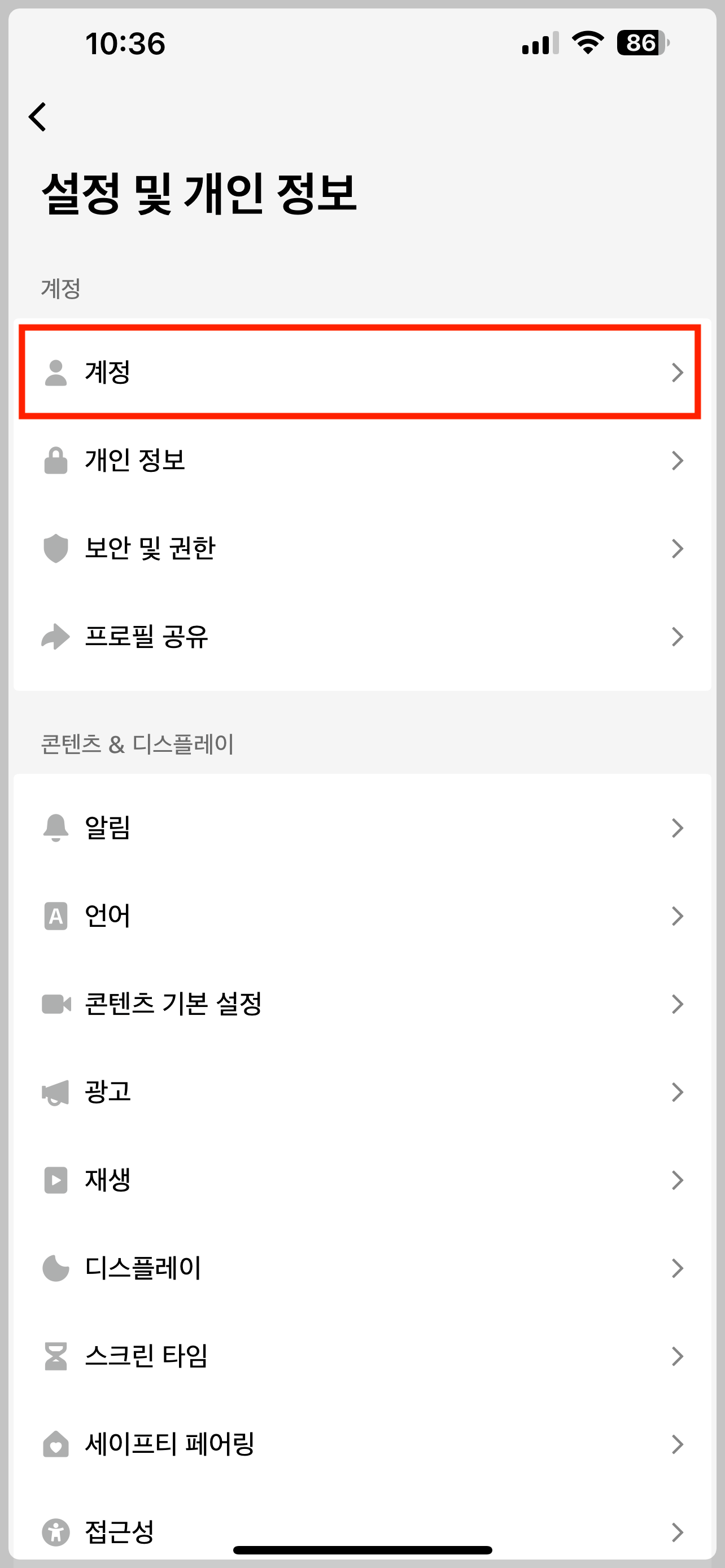 - [계정] 선택
