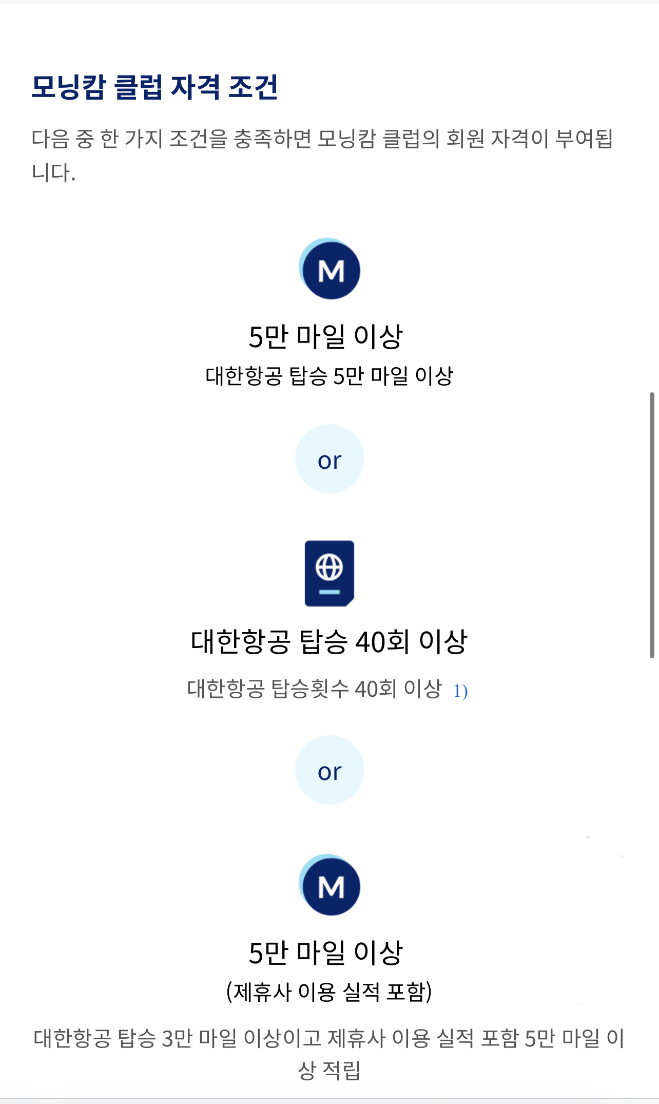 가장 기본 중의 기본! 일단 모닝캄 회원이 되어야 합니다. 대한항공을 이용한 누적 마일리지가 5만 마일리지 이상을 모으게 되면 모닝캄 회원의 자격이 주어집니다. 유럽 왕복을 하게 되면 대략 1만 마일리지 정도 쌓이니 유럽 왕복 5번 정도 하게 되면 모닝캄이 될 수 있습니다. 그렇기 때문에 모닝캄 클럽에 가입된 고객이라면 충성심으로 있는 고객으로 판단하게 되고 비즈니스석 업그레이드의 확률이 높아지는 것은 어떻게 보면 당연한 이야기일 수도 있겠습니다.