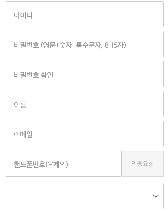 2. 아이디, 비밀번호, 이름, 이메일주소, 핸드폰번호를 입력하고 핸드폰번호 인증까지 마칩니다.