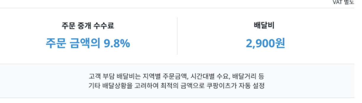 | 주문 중개 수수료 | 주문금액의 9.8% |