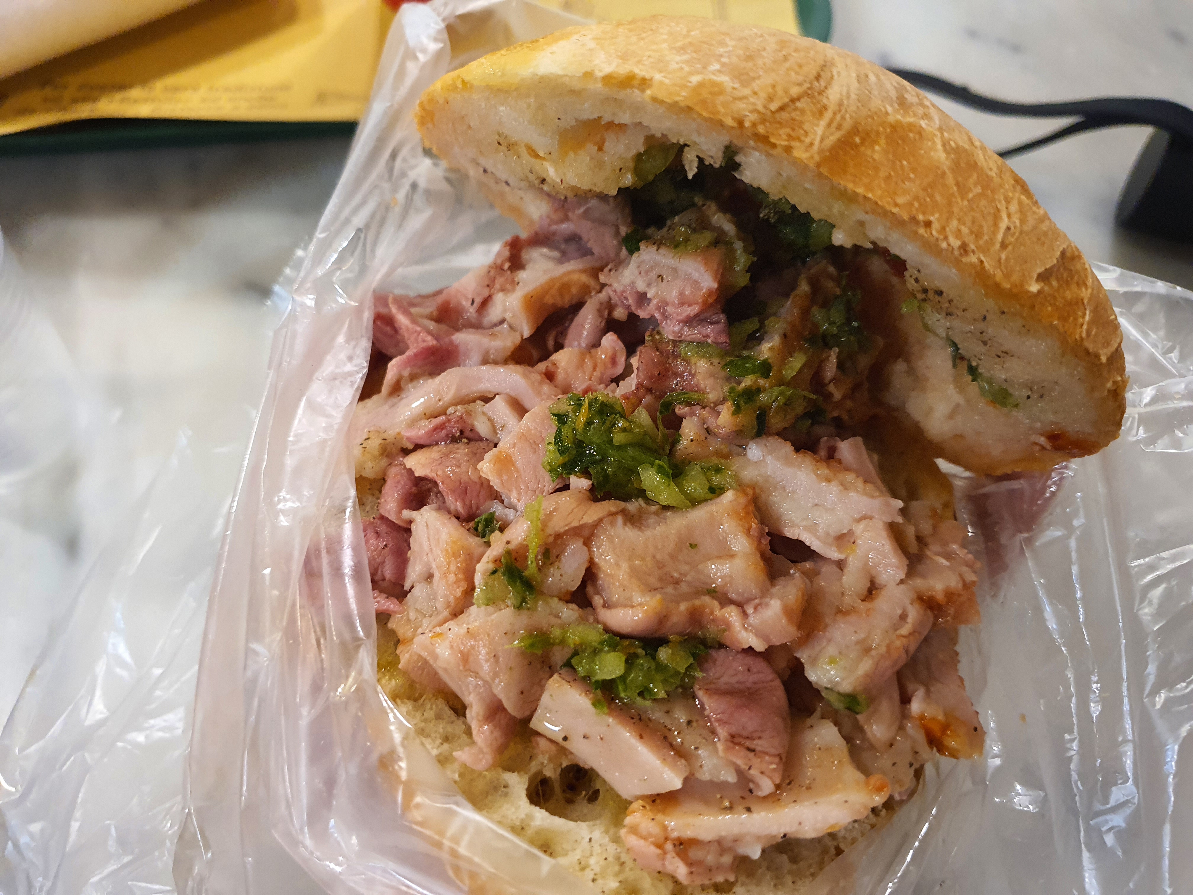 피렌체 중앙시장에서 가장 유명한 음식은 곱창 버거입니다. 마찬가지로 도축 산업이 많이 발전하여 부산물의 활용도 많다 보니 자연스레 곱창 요리도 발달했을 것 같습니다. 무엇보다 역사와 전통을 자랑하고 아직까지 현지 사람들이 사랑하는 곳으로 가격도 저렴하기 때문에 제가 찾는 맛집 조건에 100% 부합하였습니다.