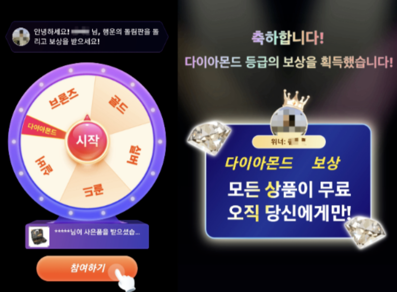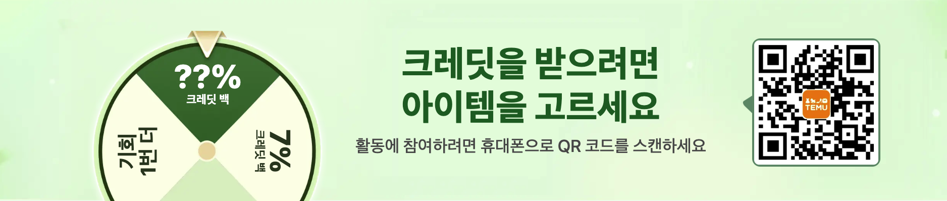 가끔 팝업으로 뜨는 룰렛으로 크레딧을 적립할 수 있는데, 테무는 중국 쇼핑몰 특성상 다양한 팝업으로 소비자를 아주 정신없게 만들기도 하죠. 저는 다른 대부분의 팝업은 무시하는 편인데 크레딧 지급 룰렛은 꼭 하는 편이에요.