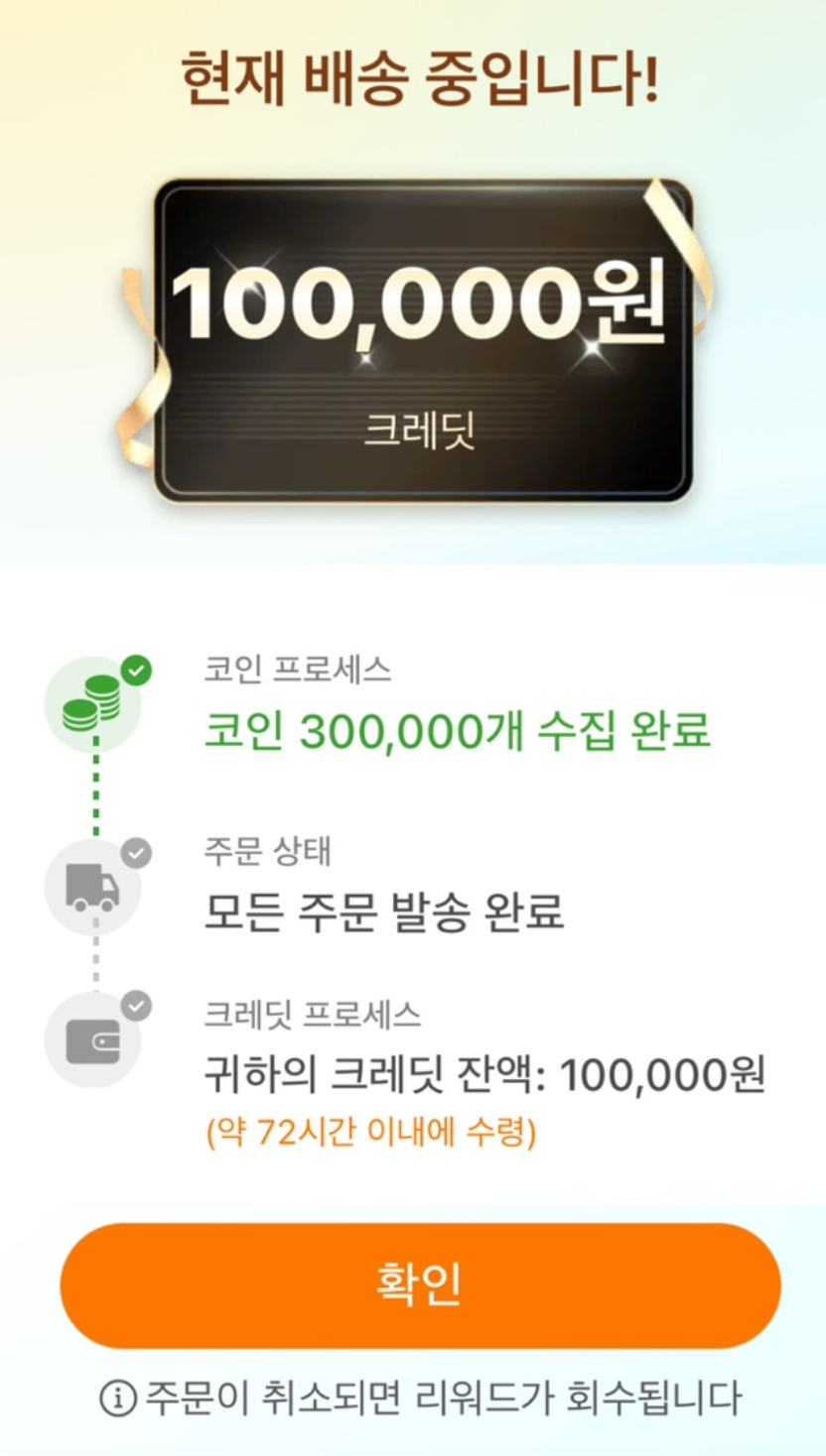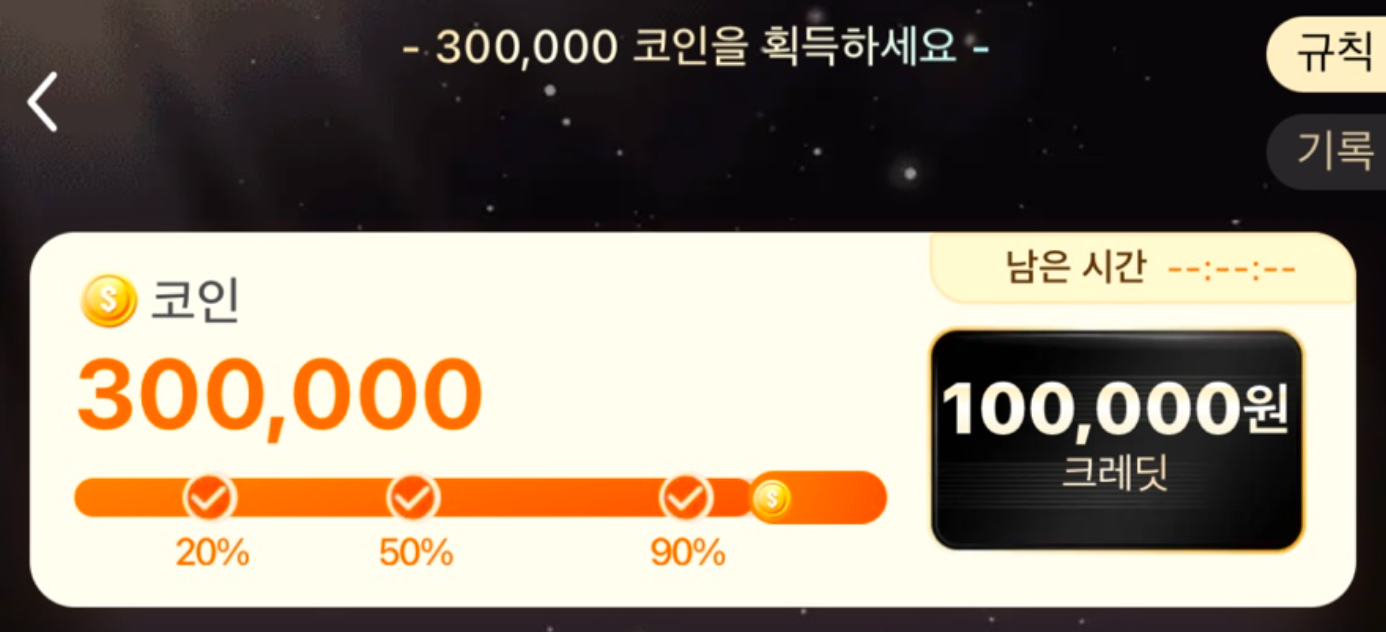 이렇게 코인 300,000개를 수집하면 10만 크레딧이 자동적으로 계정에 적립된 것을 확인할 수 있어요.