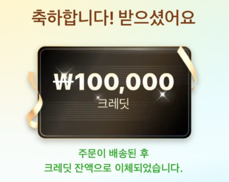 결론만 말씀 드리면, 절대 공짜로 10만원을 주는 것은 없습니다. 10만 크레딧을 받기 위해서는 그것보다 더 많은 금액의 상품을 구매해야 하므로 크레딧만을 위해서 가입하면 실망할 수도 있어요.