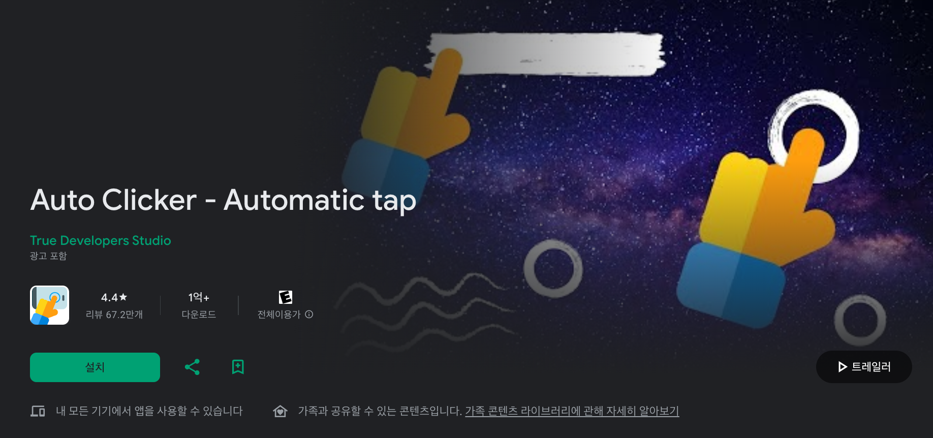 1. 구글 플레이 스토어 혹은 앱스토어에서 Auto Clicker를 검색 후 다운로드 [다운로드 바로가기]