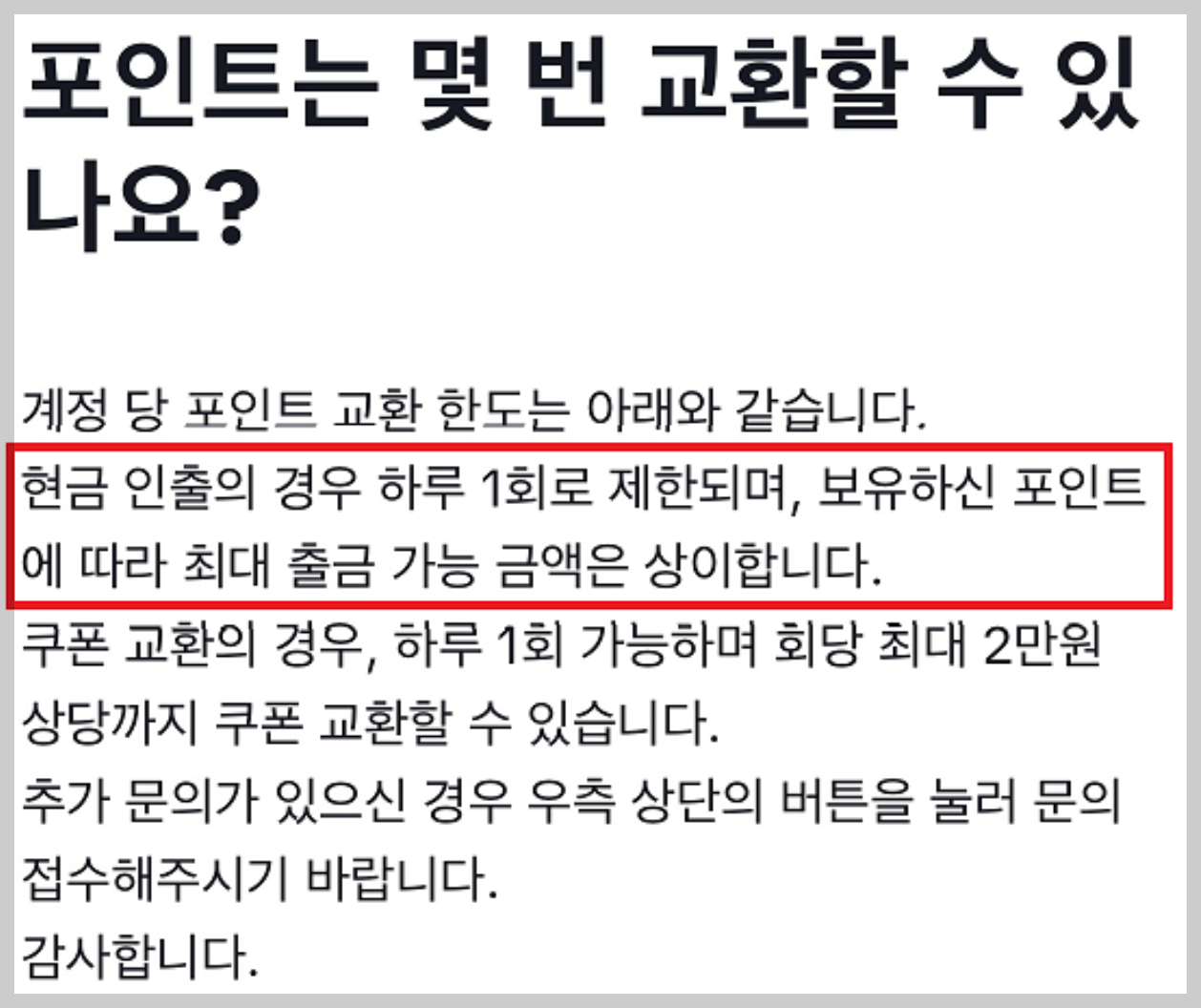 - 최대 출금 한도 : 보유한 포인트에 따라 출금금액 상이