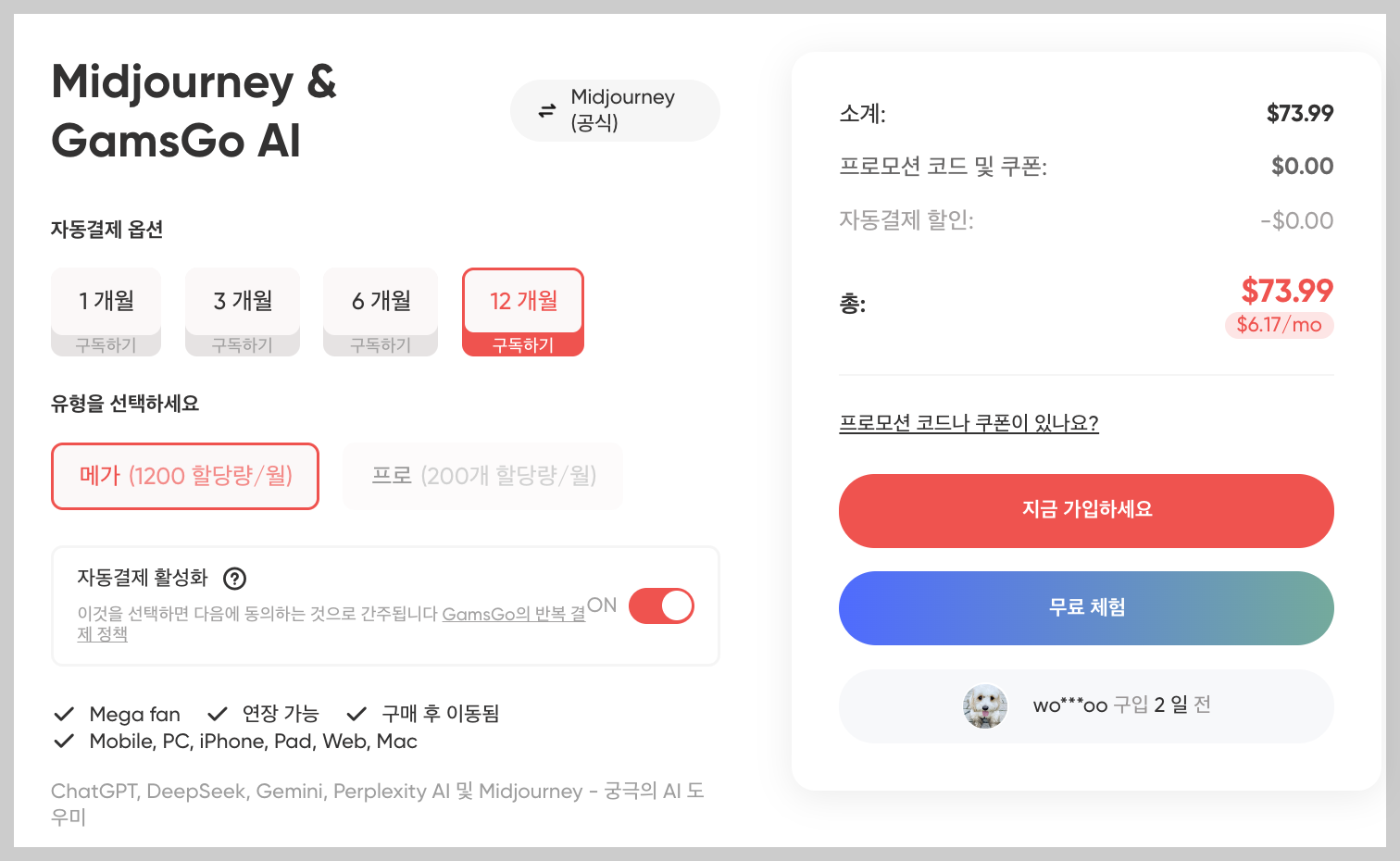 미드저니를 저렴하게 가입하는 방법? 겜스고!