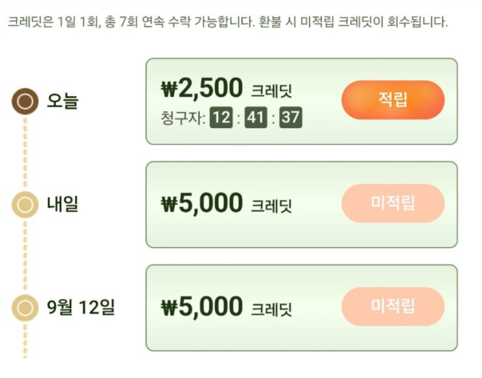 2. 7일에 걸쳐 크레딧을 적립하여 모두 획득해줍니다.