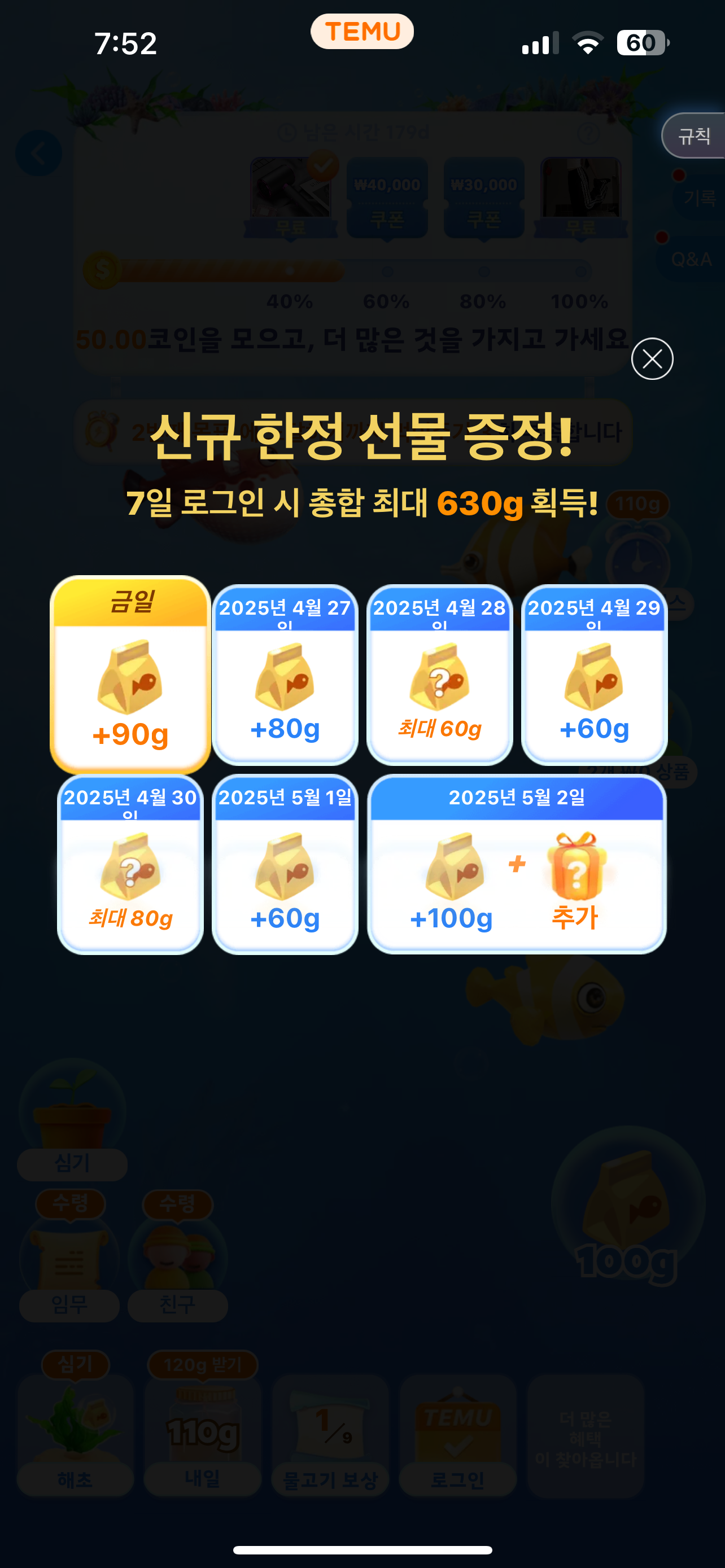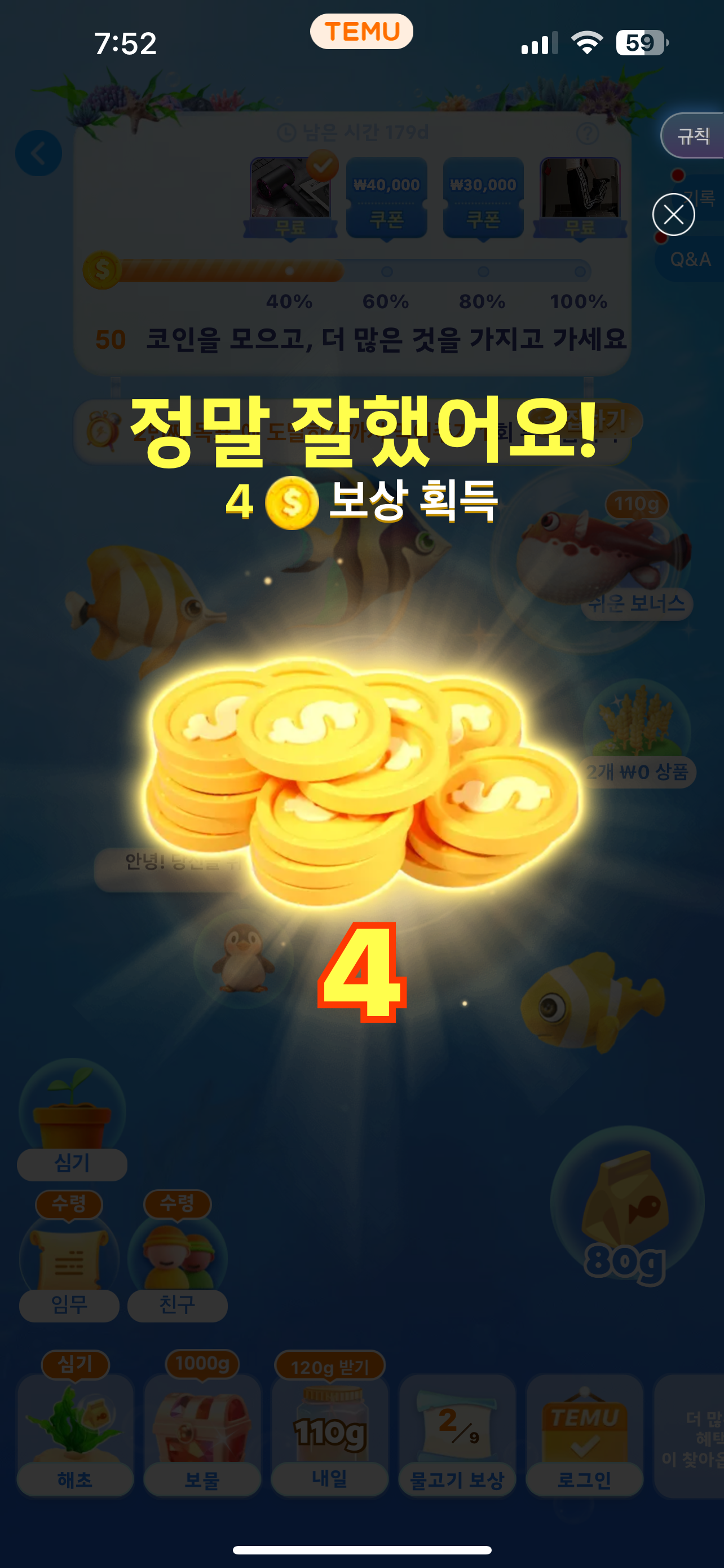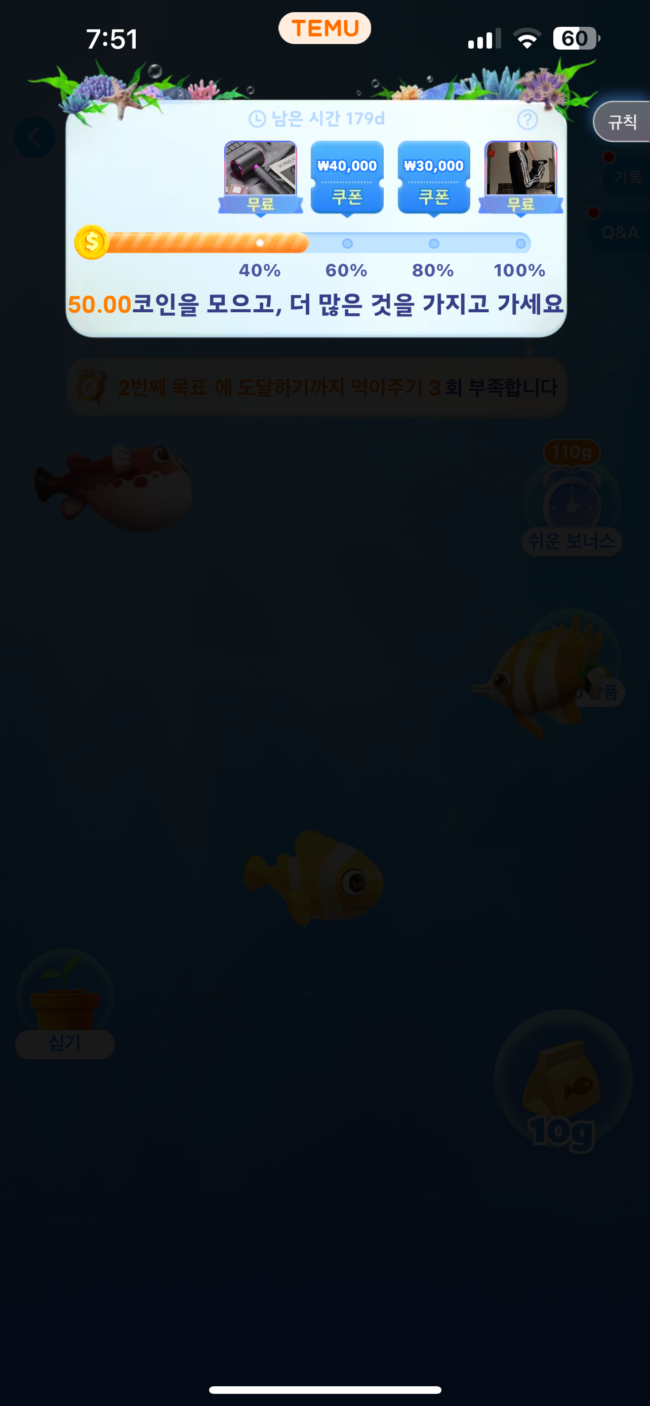 요즘 많이들 사용하는 테무에서 이벤트로 하고 있는 피쉬랜드 다들 해보셨나요? 저도 드디어 참여해보았는데, 처음에는 긴가민가 하다가 직접 해보니 의외로 중독성도 있고 끝까지 하고 싶은 오기도 생기더라구요. 무엇보다 무료로 선물을 받을 수 있다는 점이 정말 마음에 들었는데, 실제로 물건을 받았다는 후기가 많아 혹해서 시작했다가 저도 꽤 가까이 가고 있어 후기를 남겨 봅니다.