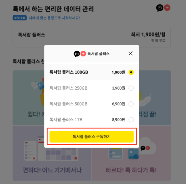 - 톡서랍 플러스 100GB : 1,900원