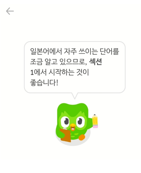 한국어로 학습할 수 있는 언어는 일본어 외에도 스페인어, 중국어, 이탈리아어, 프랑스어 등이 있는데 일본어는 왜이렇게도 늦게서야 지원해준 건지..... 그래도 지금이라도 해준게 어딘지! 바로 일본어를 선택하고 테스트를 했는데 여태까지 학습한 것들은 다 사라지고 처음부터 코스를 시작해야 했습니다. 어쩔 수 없지만 저의 하찮은 기억력으로 학습한 부분을 건너 뛰고 바로 시작했어요.