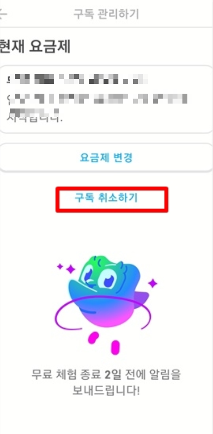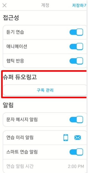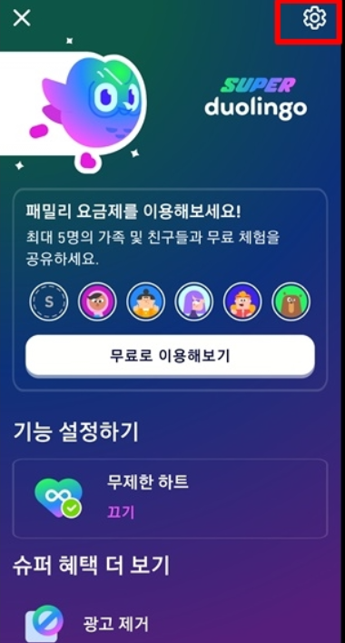 혹시 위의 방법이 어려운 분들은 듀오링고 앱에 직접 접속해서 구독취소를 해보세요.