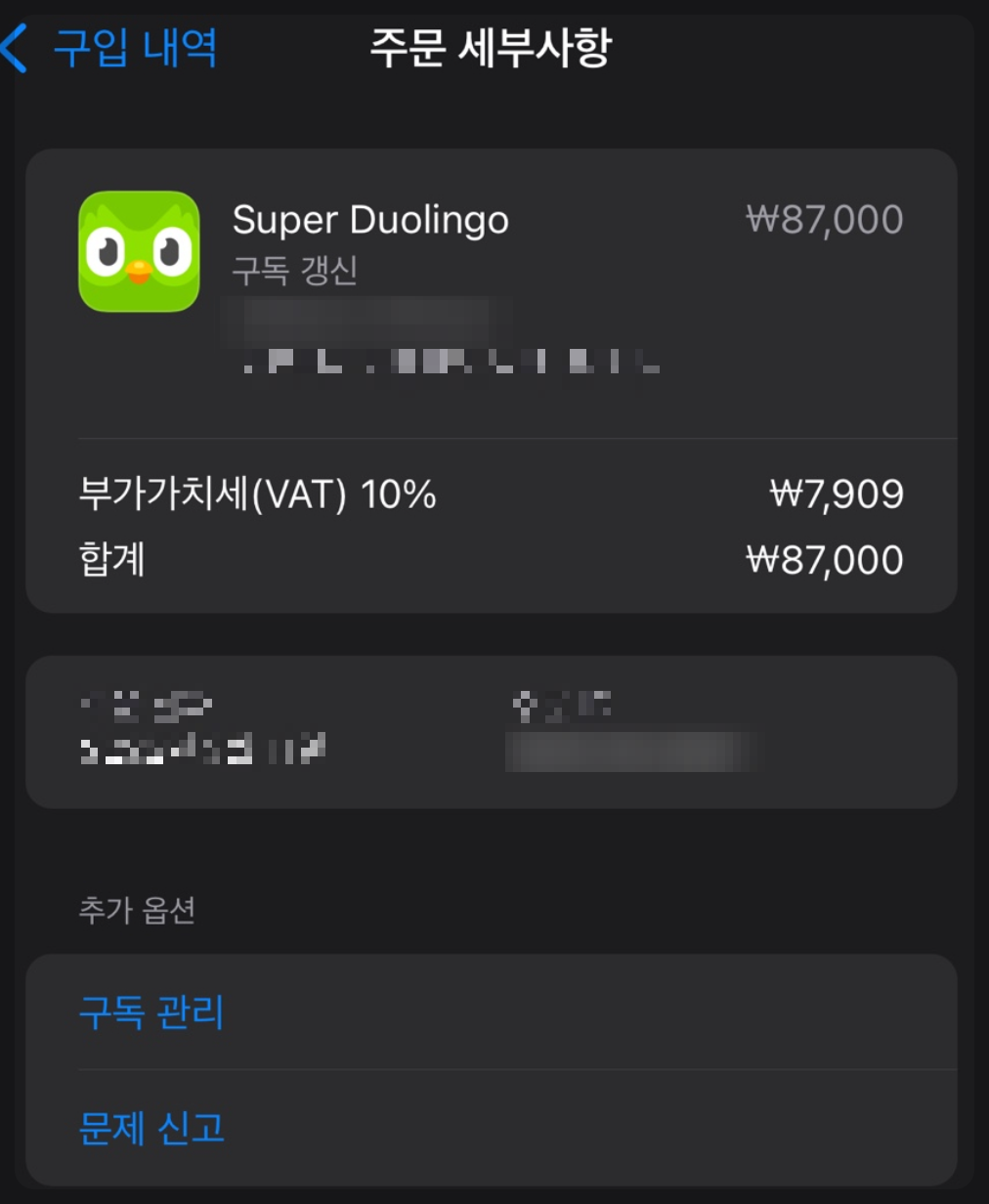 핵심은! 듀오링고 환불은 듀오링고 앱이 아니라 앱스토어나 플레이스토어에서 해야 한다는 점입니다.