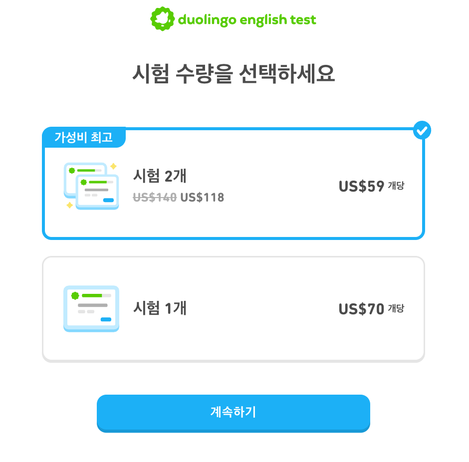게다가 시험비가 $59(약 8만원대)로 TOEFL이나, IELTS보다 훨씬 저렴하다는 것도 큰 장점입니다. 시험 2개를 신청해야 할인 받을 수 있다고 하지만 그래도 저렴하지 않나요?
