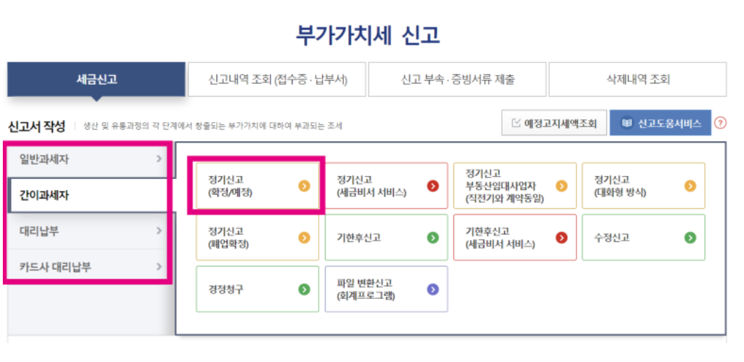 | 부가가치세 | 과세 유형에 따라 신고 | 연 2회 (1월, 7월) |