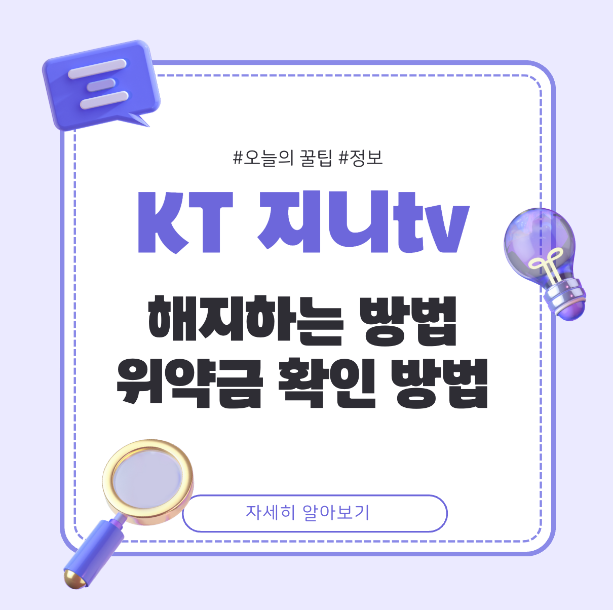 인터넷이나 IPTV, OTT 상품들은 보통 3년 약정을 전제로 가입합니다. 3년 약정을 조건으로 설치비 면제, 사은품, 요금 할인 등 다양한 혜택을 받는데요. 개인적인 사정이나 통신사 이동을 위해 약정을 채우지 않고 해지하면 그 혜택을 반환해야 하므로 위약금이 발생하게 됩니다. 오늘은 KT 지니TV/KT 인터넷을 해지할 때 발생할 수 있는 위약금과 절차를 정리해볼게요.