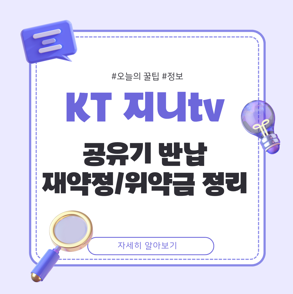 일반적으로 인터넷과 IPTV, OTT 서비스는 3년 약정으로 가입합니다. 재약정이나 통신사 이동 시 현금·상품권 혜택을 받을 수 있어 시간이 지나면 더 좋은 조건을 찾아 이동하려는 경우가 많죠. 다만 약정이 끝났는지 반드시 확인하고, 해지를 고려한다면 해지 절차, 공유기(임대 장비) 반납, 위약금, 재약정 혜택을 꼭 비교해보는 것이 좋습니다. 본 글은 KT 인터넷 + 지니TV 기준으로 정리했습니다.