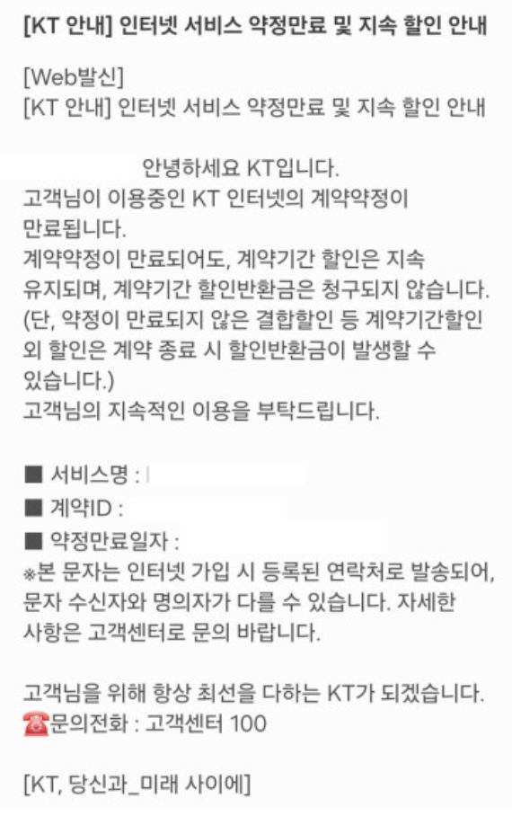 이번 재약정은 월 요금 소폭 인하 + 상품권 + 속도 업그레이드까지 묶여서 체감 만족도가 꽤 높았습니다. 무엇보다 번거로움 없이 기존 환경을 유지한 채 혜택만 챙길 수 있었던 점이 가장 컸어요. 약정 만료가 다가온다면 KT 고객센터(100)에 꼭 한 번 문의해 보세요. 생각보다 좋은 조건을 제안받을 수 있습니다.