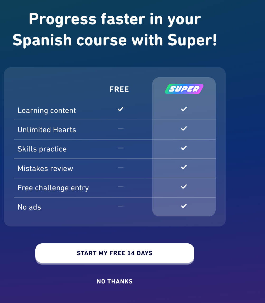 듀오링고는 기본적으로 무료로 사용할 수 있지만, 무료 버전은 광고가 계속 나오고 문제를 틀리면 하트가 줄어드는 불편함이 있습니다. 그래서 많은 분들이 Duolingo Plus 혹은 슈퍼 듀오링고(Super Duolingo)를 선택합니다.