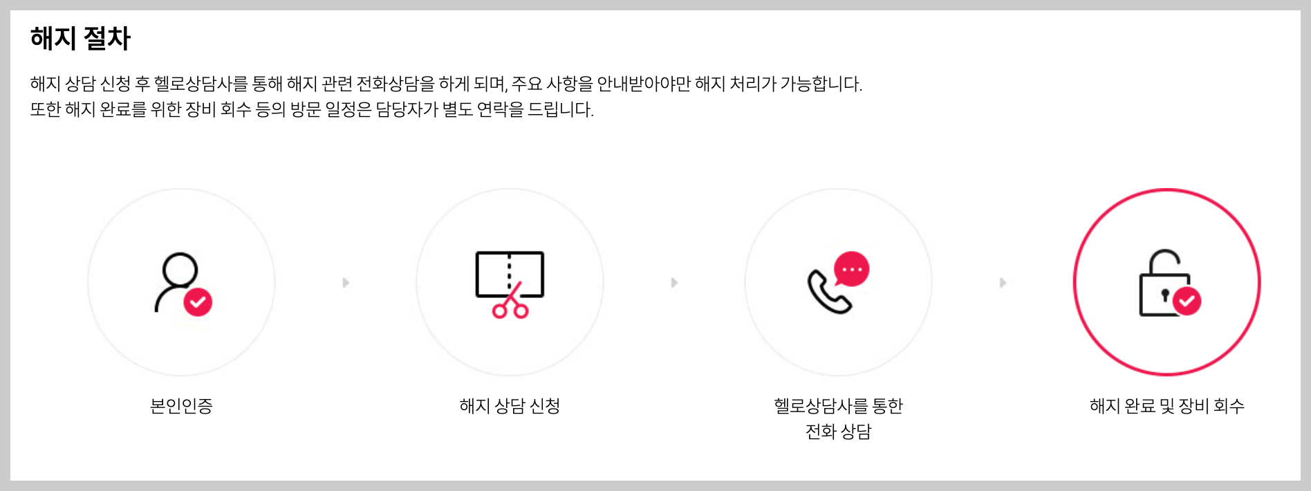 - 전화 해지: 1855-1000으로 신청 → 해지일 지정, 장비 반납 안내.