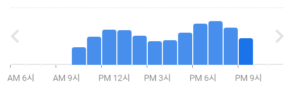주로 3시 이후의 시간이 손님들이 덜 몰리는 시간이니 기다리는 것을 싫어 하시는 분들은 아래의 구글 인기 시간대를 참고하시면 좋겠습니다.