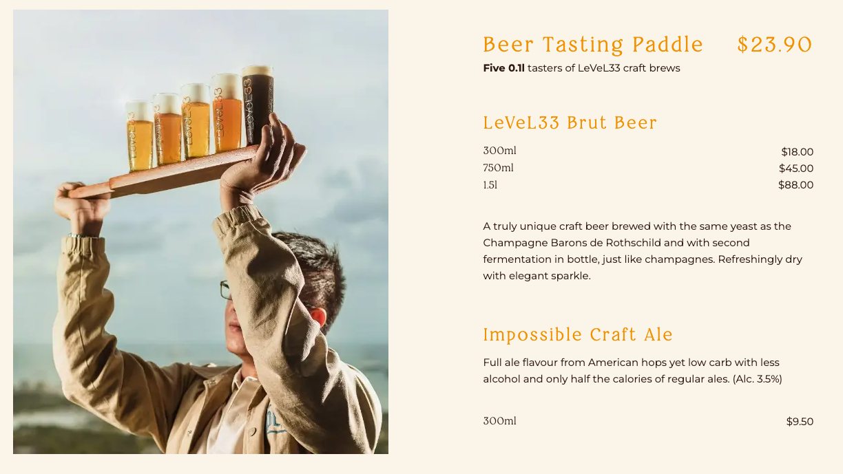 Visit the world’s highest urban microbrewery at MBFC for a multi-zone dining experience like no other. Book a table at LeVeL33 bar & restaurant today.