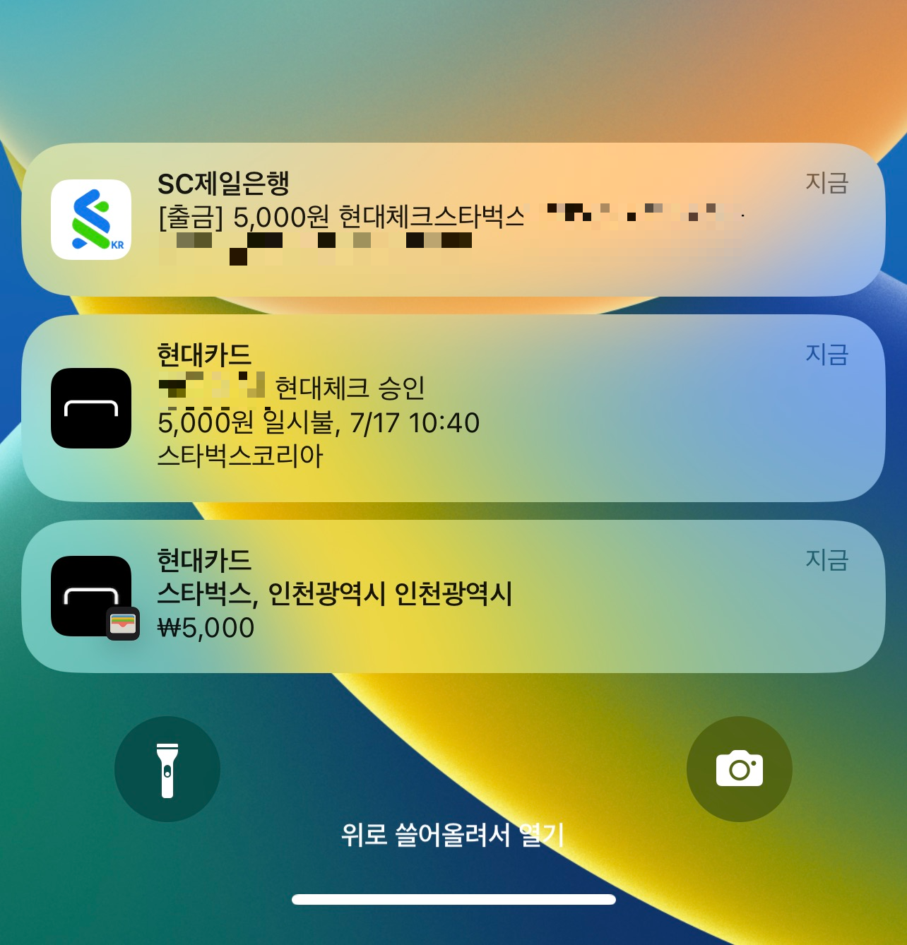 반면에 스타벅스 앱에 들어있는 스타벅스 카드는 사용 가능하니 결재할 때 미리 참고하세요.
