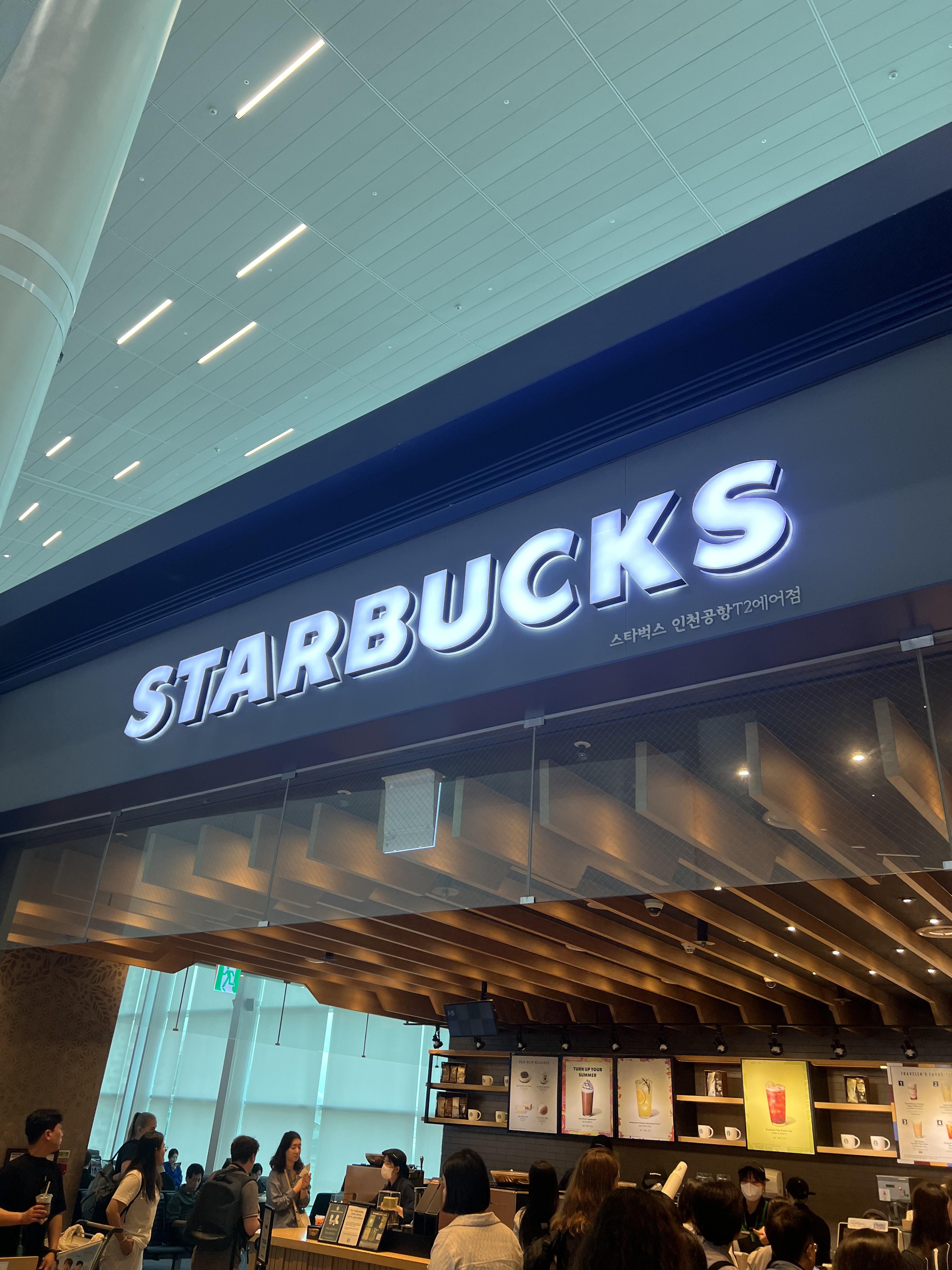 공항에서 대기시간이 너무 길거나 피곤해서 카페인이 필요할 때 많으시죠? 그 때 가장 생각나는 것이 커피입니다. 인천공항은 그 규모에 맞게 정말 던킨도넛, 엔젤리너스 등 많은 카페가 있습니다. 하지만 가장 무난하고 전 세계사람들이 선호하는 곳이 스타벅스인데요.