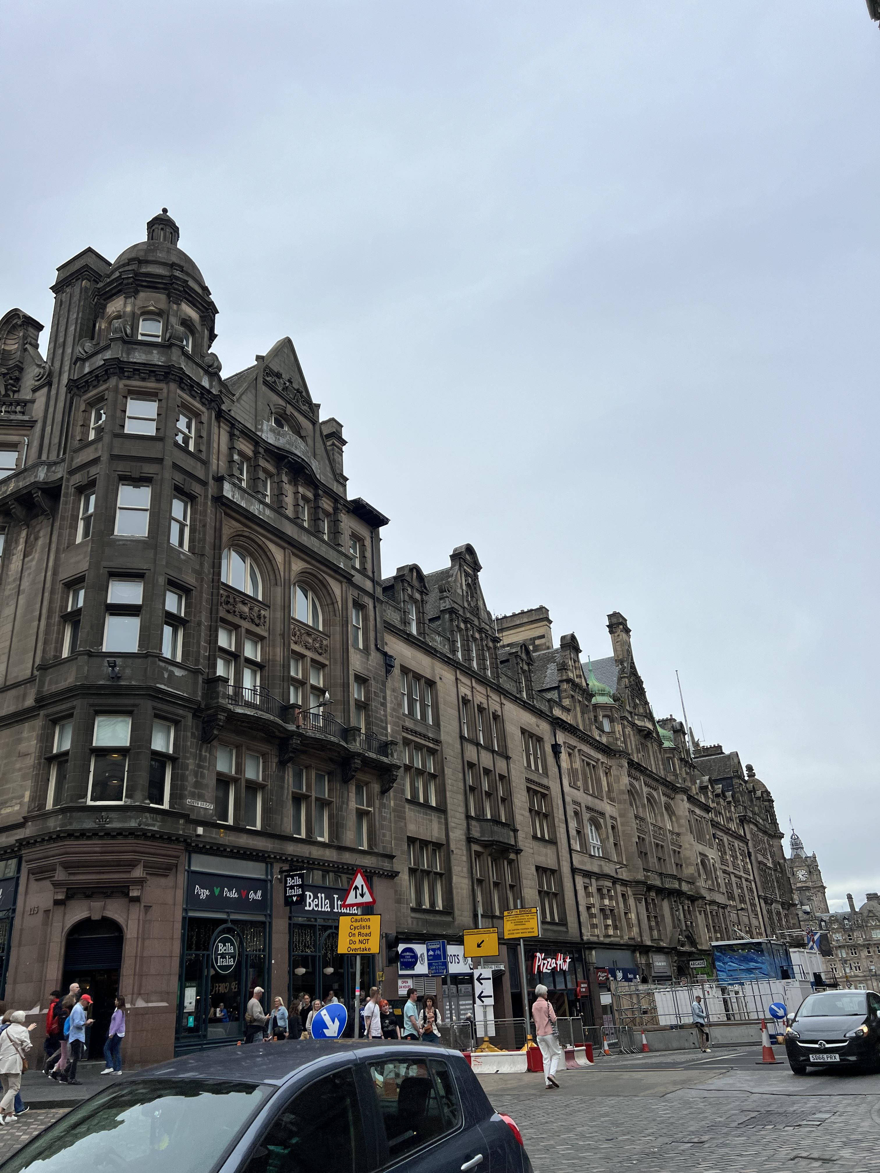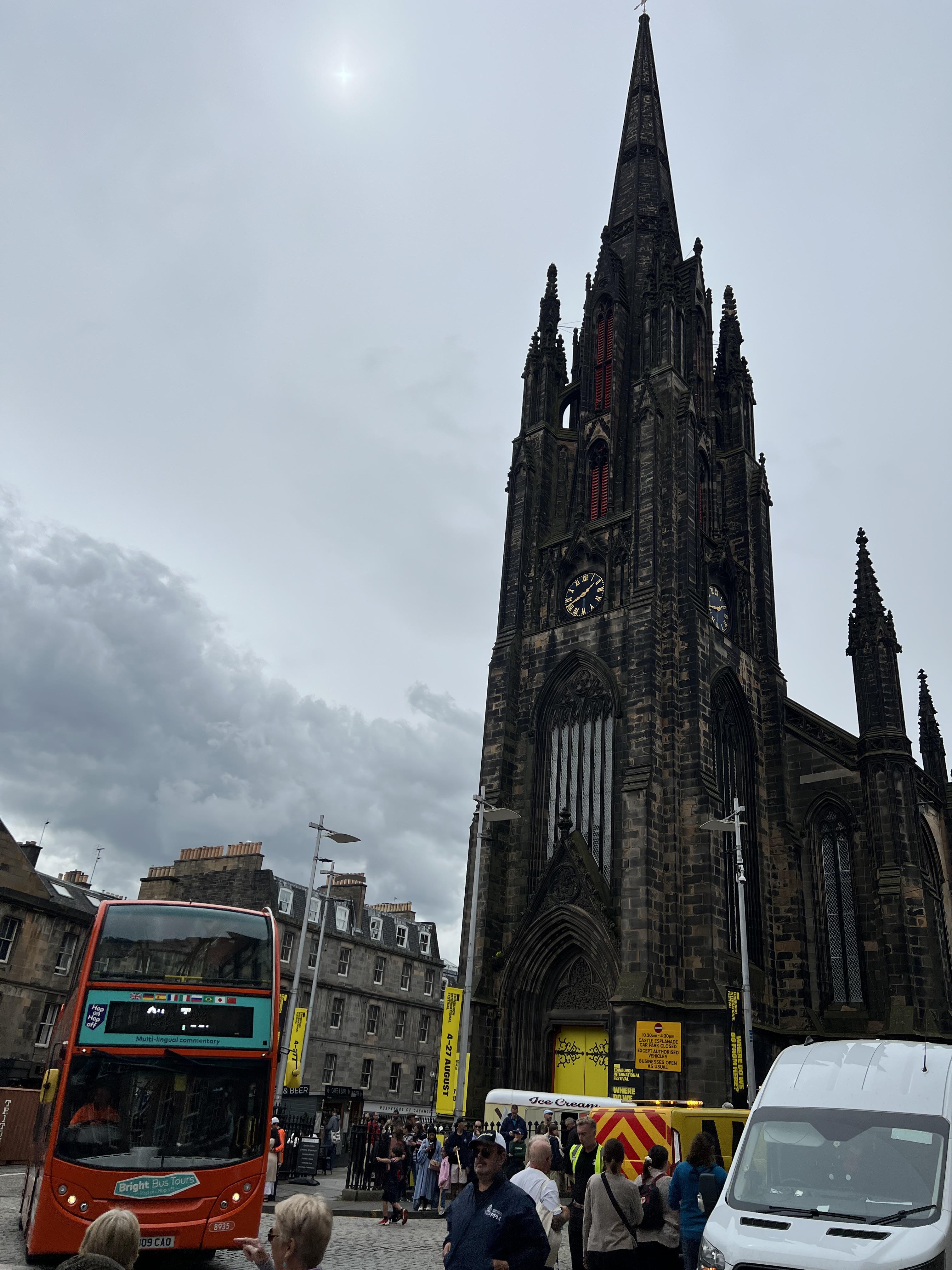 제가 갔을 당시는 날씨가 좀 어두웠지만 스코틀랜드의 건물색과 오히려 어울리는 날씨였습니다. 런던과 마찬가지로 빨간 2층 버스가 매력적인 동네입니다. 저는 왜 그런지 외국만 나가면 그 나라의 국기가 펄럭이는 모습이 항상 마음에 와닿는데요. 멋들어진 건물 밖으로 영국 국기와 스코틀랜드 국기가 나란히 게양되어 있는 모습이 인상적입니다.