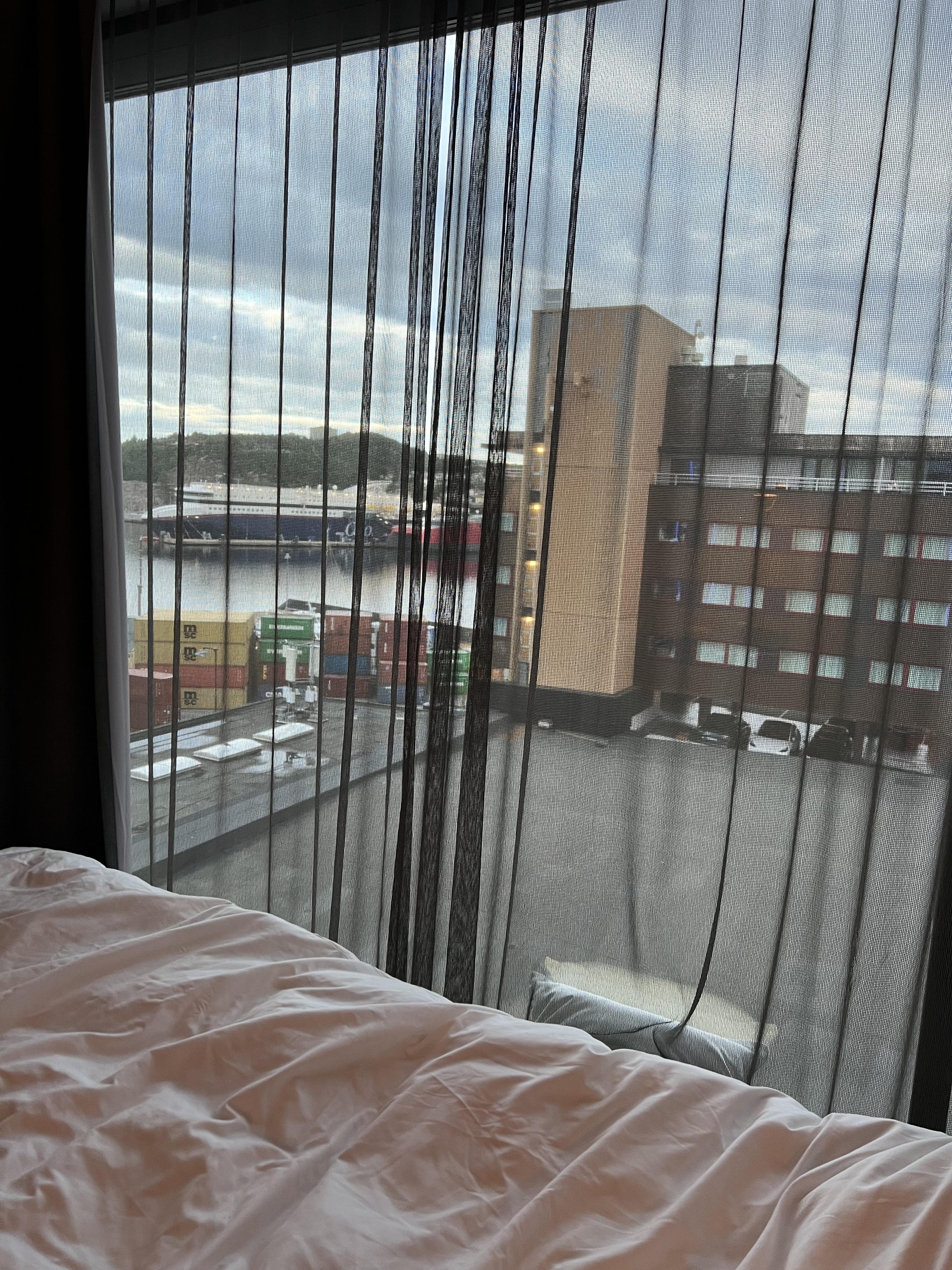 제가 묵었던 방에서 바라본 뷰입니다. 항구와 마주하고 있기 때문에 컨터이너가 적치된 모습도 보이고, 멀리는 크루즈선을 볼 수 있습니다.