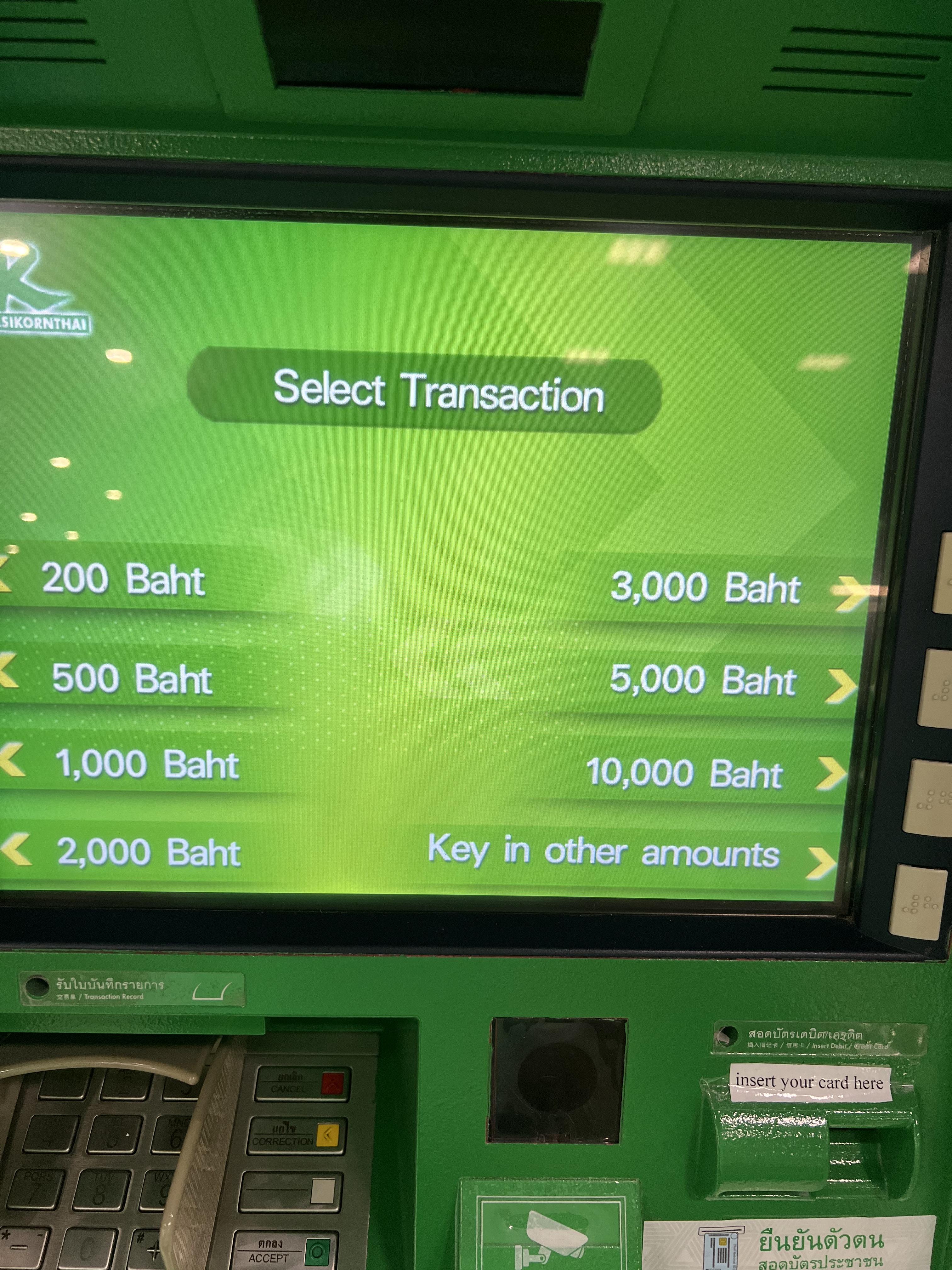 태국에서는 얼마를 출금하든 출금 수수료가 220바트(약 8,300원)가 발생합니다. 트레블월렛이라고 해서 예외는 없었습니다. 저는 트레블월렛을 사용하면 전 세계 어디든 출금 수수료가 무료라고 생각했는데 일부 국가는 예외였으니 미리 알아보고 가야 합니다.