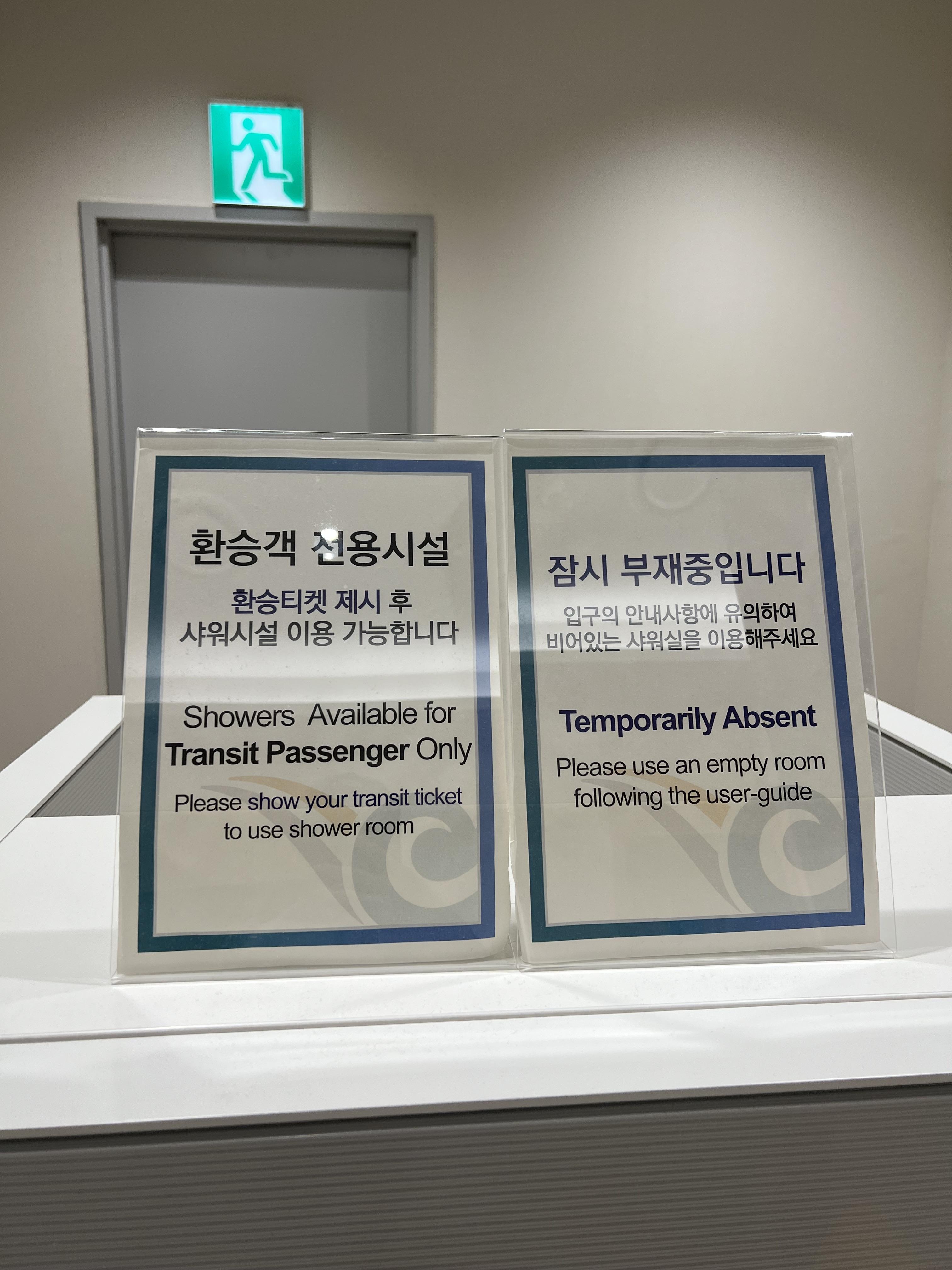 단, 해당 샤워실은 환승객 전용으로 인천공항을 거쳐가는 환승객만 사용할 수 있습니다. 지방러인 저는 최종 도착지가 김해공항이기 때문에 입국할 때 주로 사용을 하는 편입니다. 환승 티켓을 제시해야만 입장이 가능하니 환승용 티켓을 소지하지 않은 분들은 공식적으로 사용할 수 없습니다.