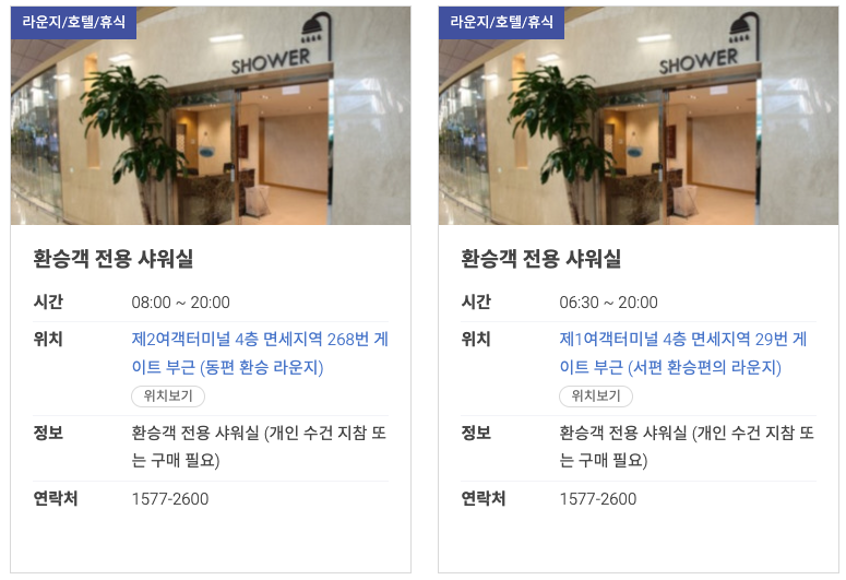 인천공항 무료 샤워실 정보