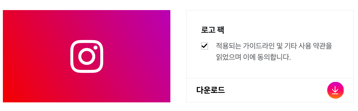 - 제공되는 인스타그램 로고 팩의 사용약관에 동의하고 다운로드 받아줍니다.