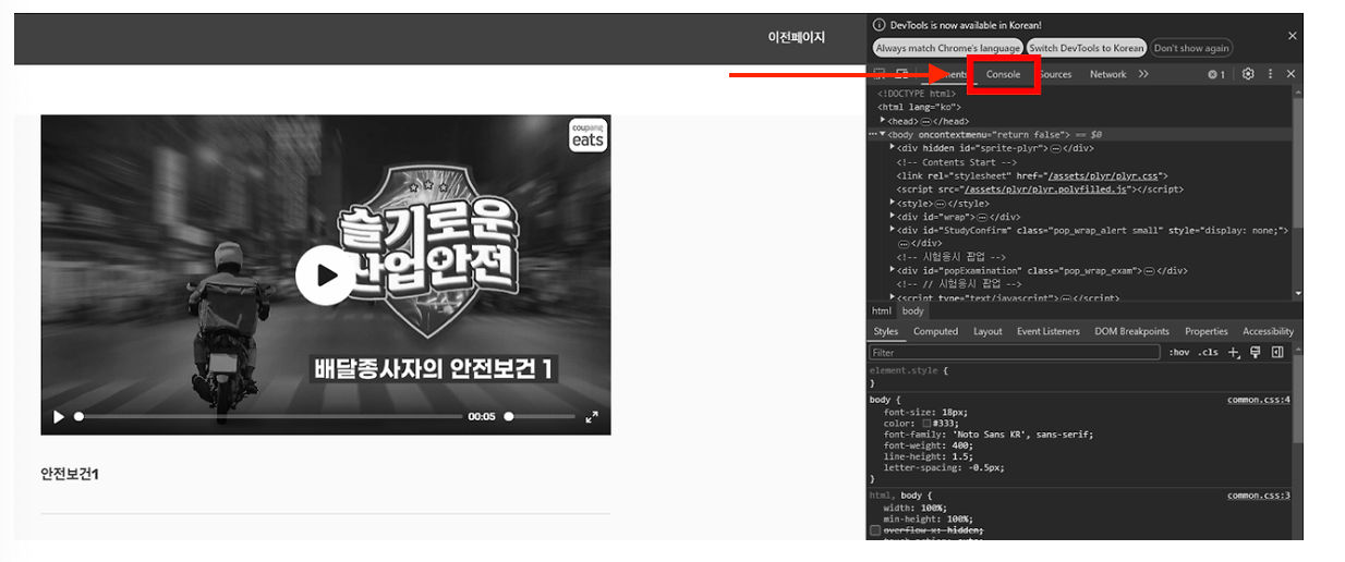 3. 학습하기 화면에서 키보드의 F12를 눌러주면 Console 화면을 찾을 수 있습니다.